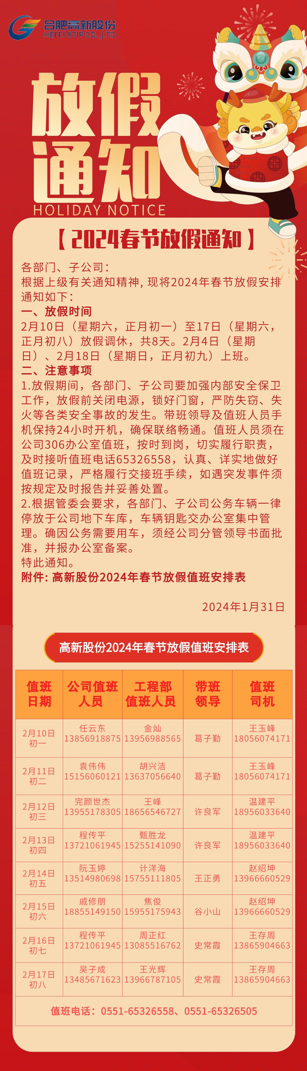 關(guān)于2024年春節(jié)放假安排的通知